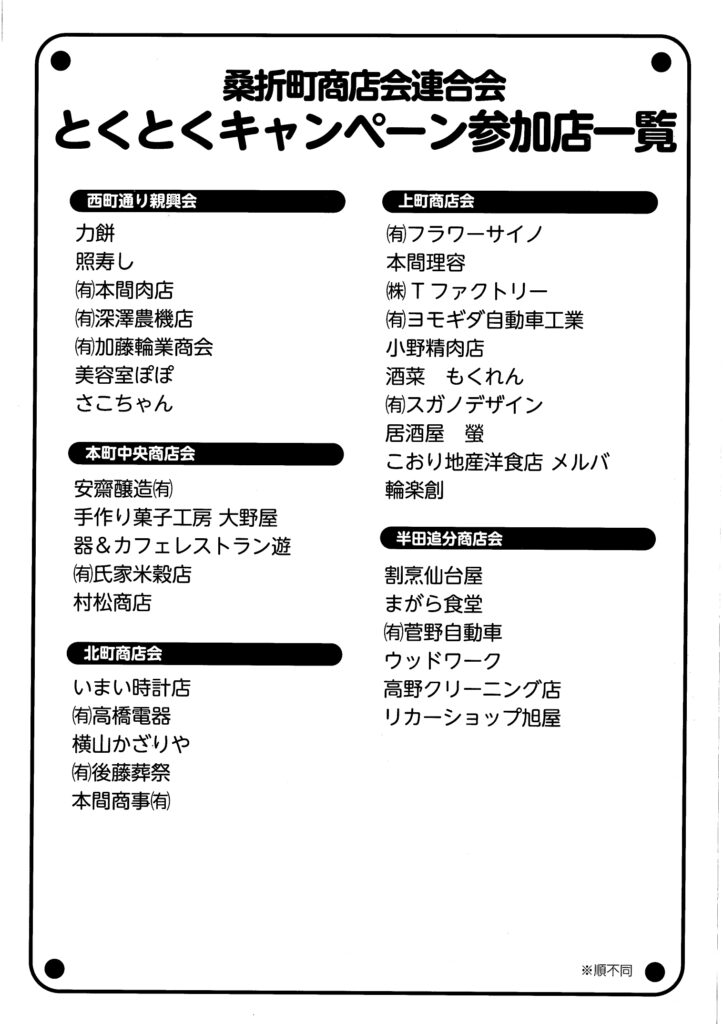 参加店舗一覧やキャンペーン内容の詳細は、チラシをご確認ください。